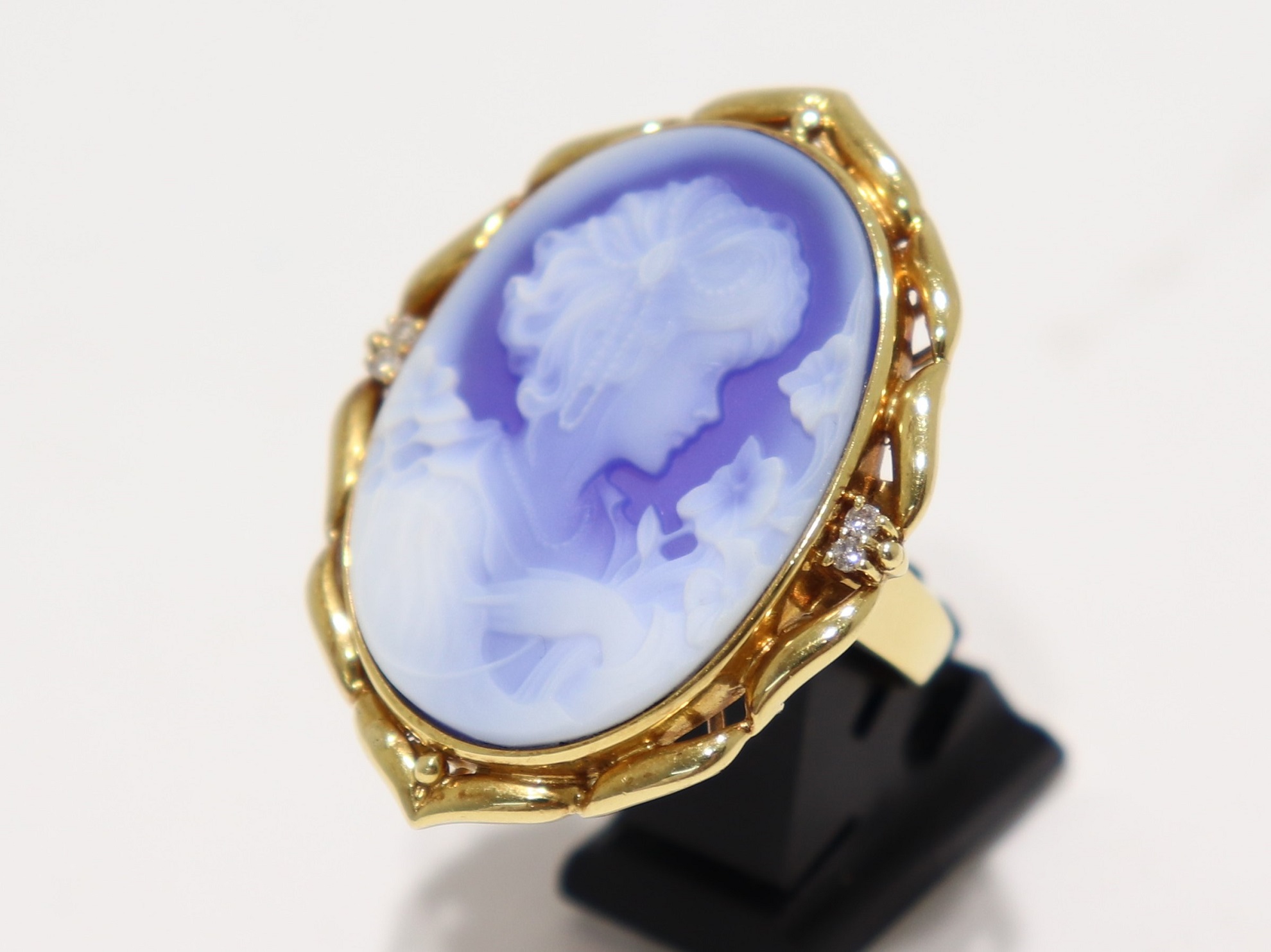 『18金 カメオ デザインリング ダイヤ0.07カラット』の買取実績の商品です。