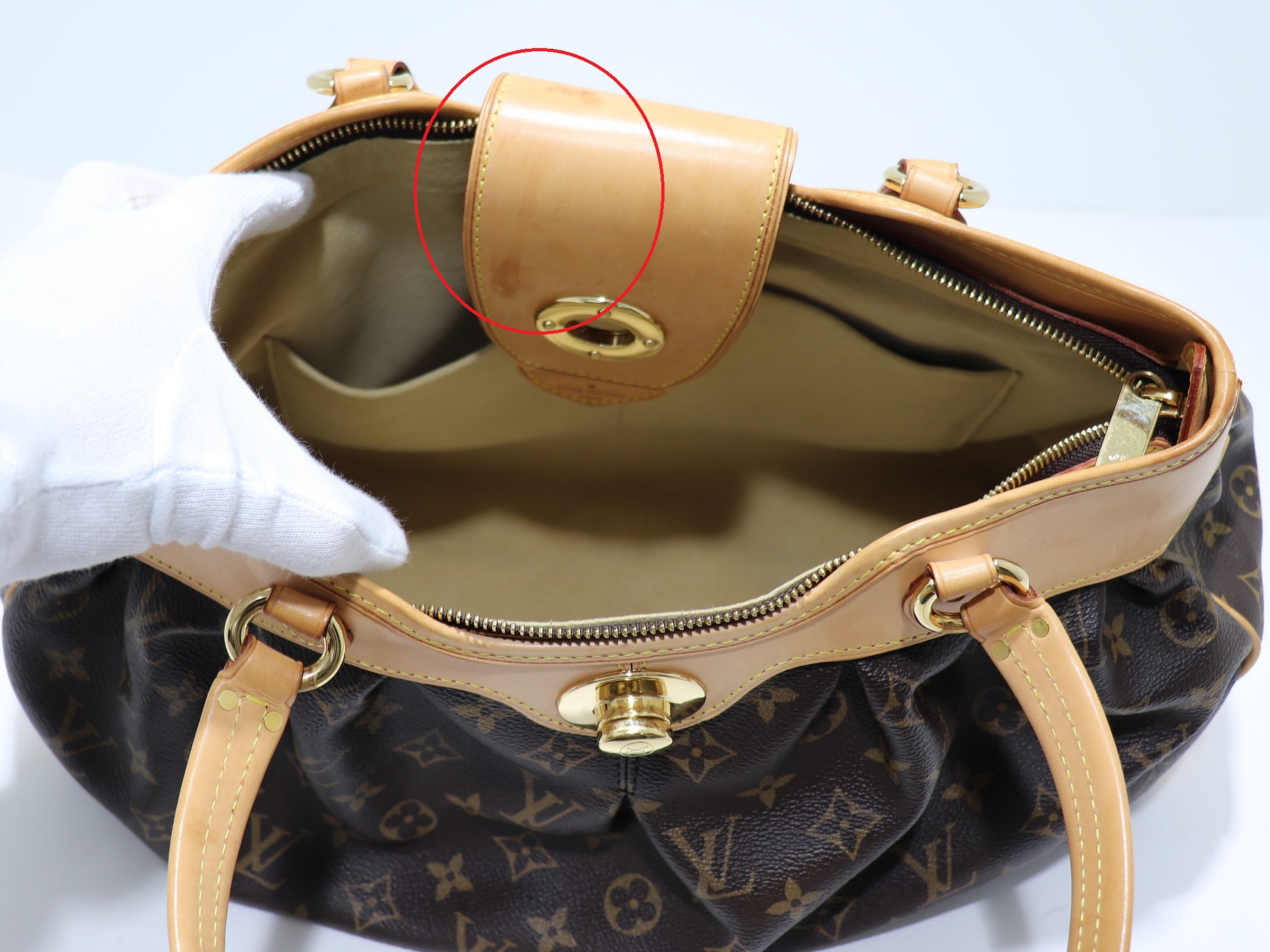 今回のルイヴィトン モノグラム ボエシMM M45714は画像でも分かる通りヌメ革部分が多いバッグです。