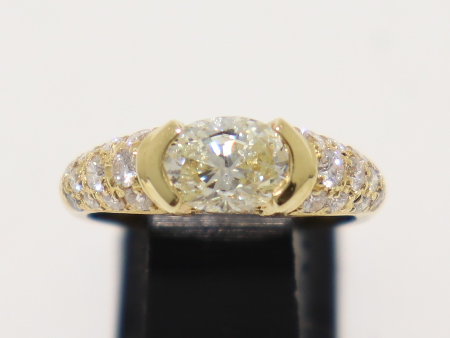 センター部分のダイヤはオーバルカットのイエローカラーで、テリ・輝きのある美しいダイヤです。