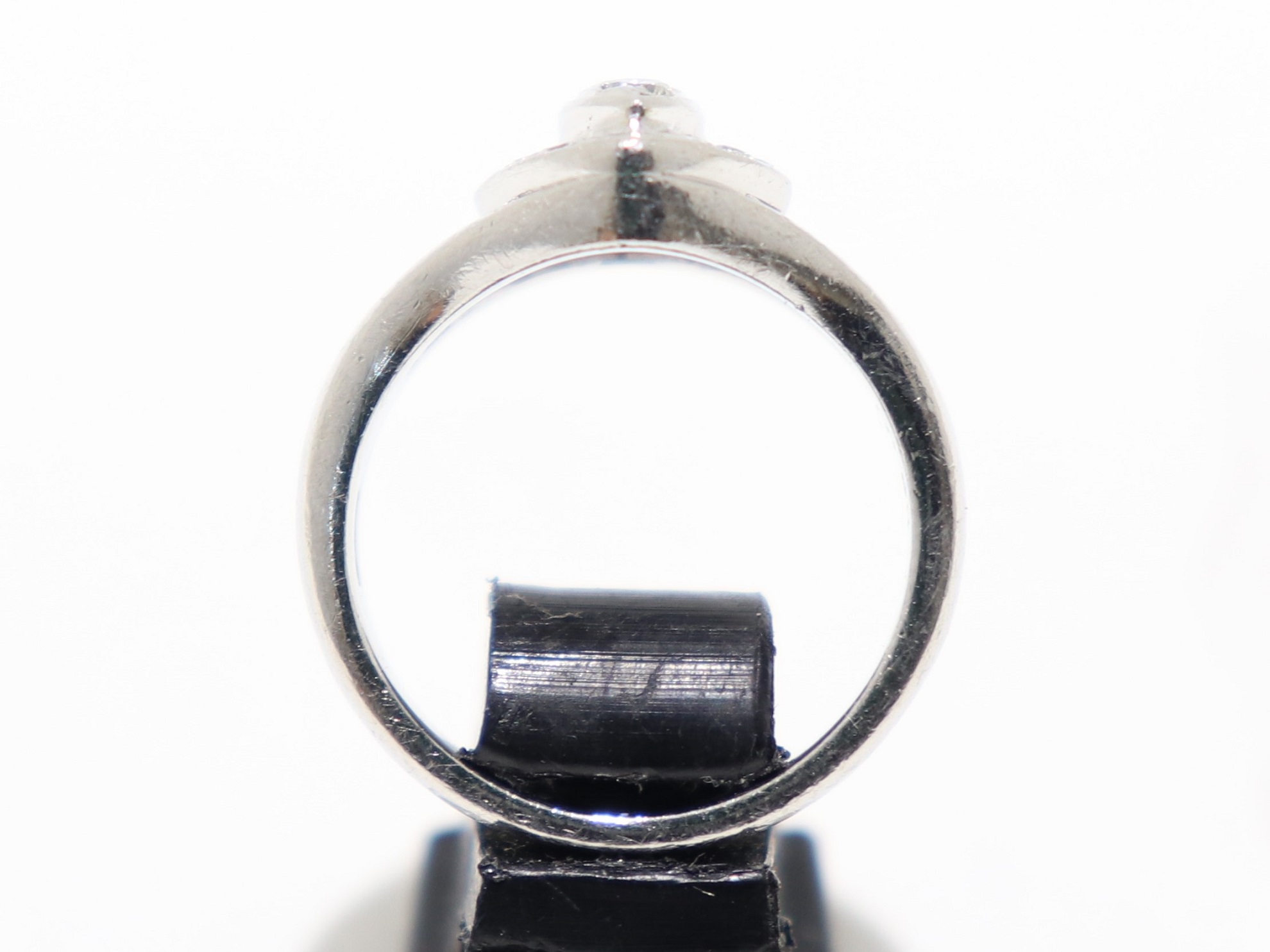 Pt900素材のリング枠で中央は菱形にデザインされており、ダイヤがセッティングされています。