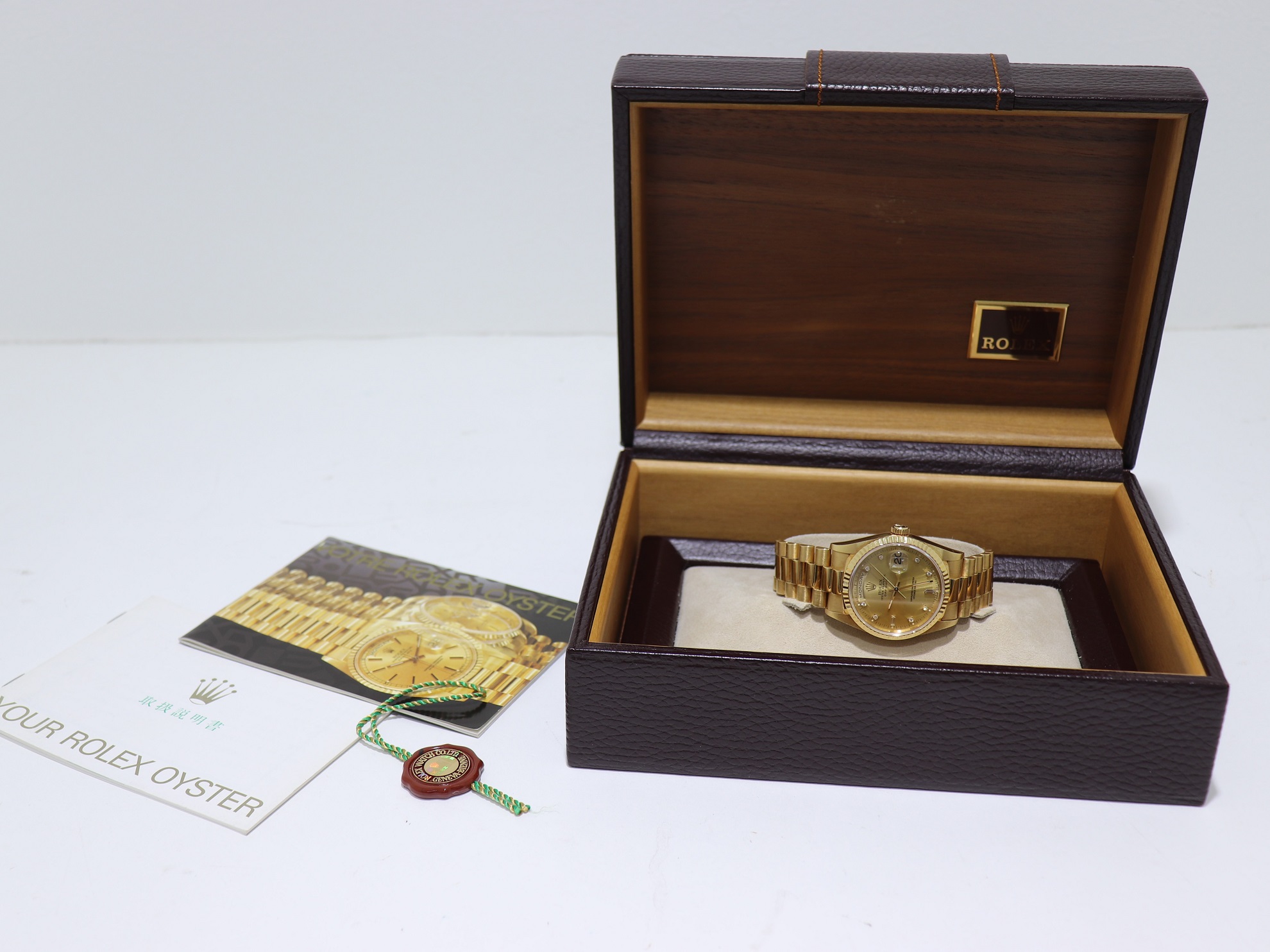 「ロレックス 18238A 金無垢 デイデイト 10Pダイヤ W番」の買取実績です。
