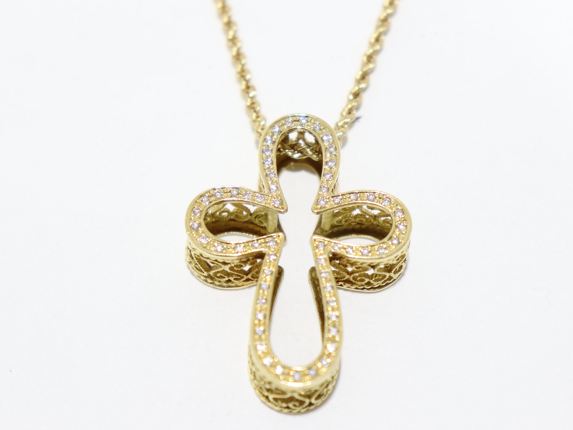 三重県津市のお客様よりK18YG クロスモチーフ ネックレス ダイヤモンド 0.41ctをお買い取りさせていただきました