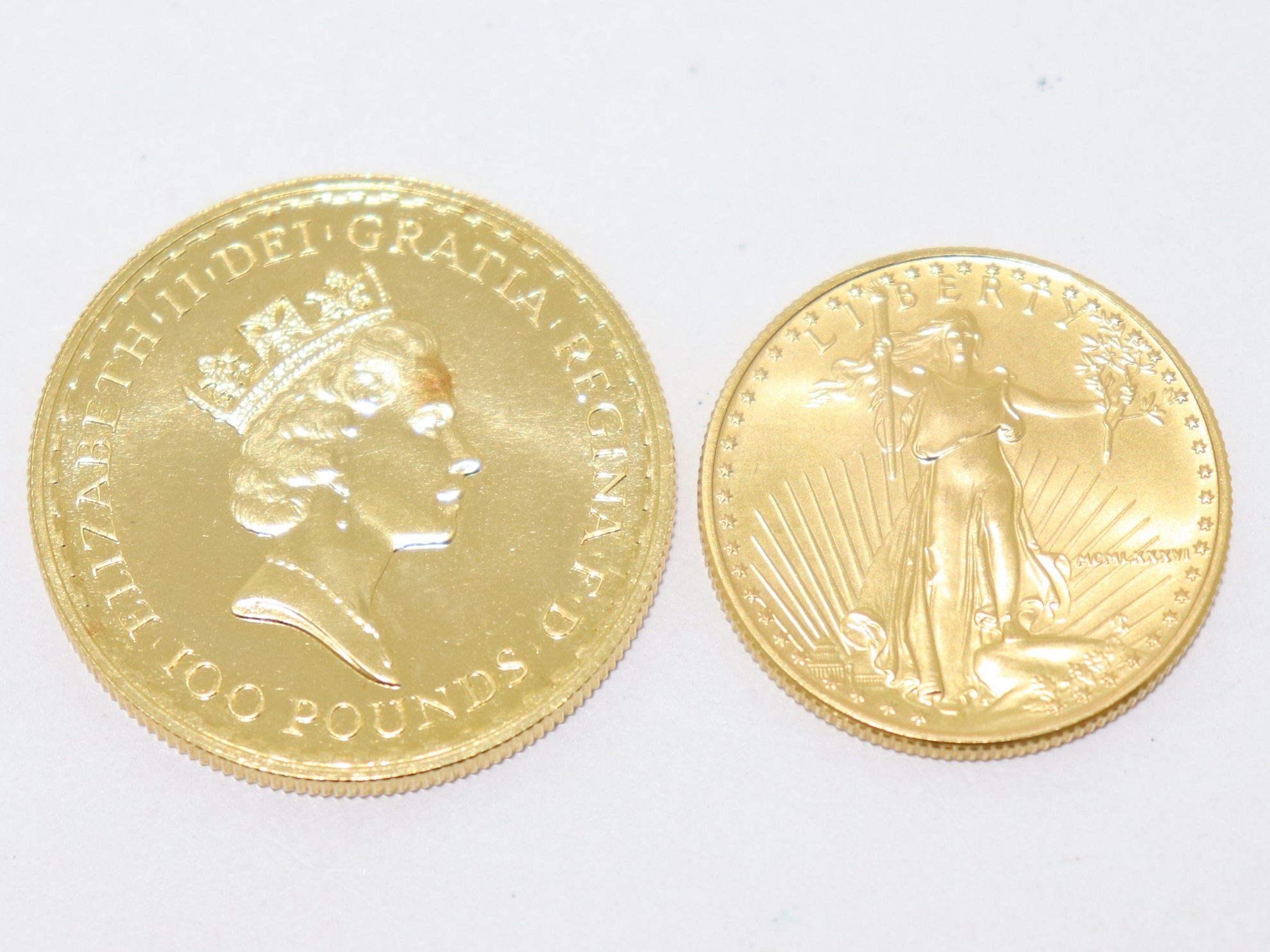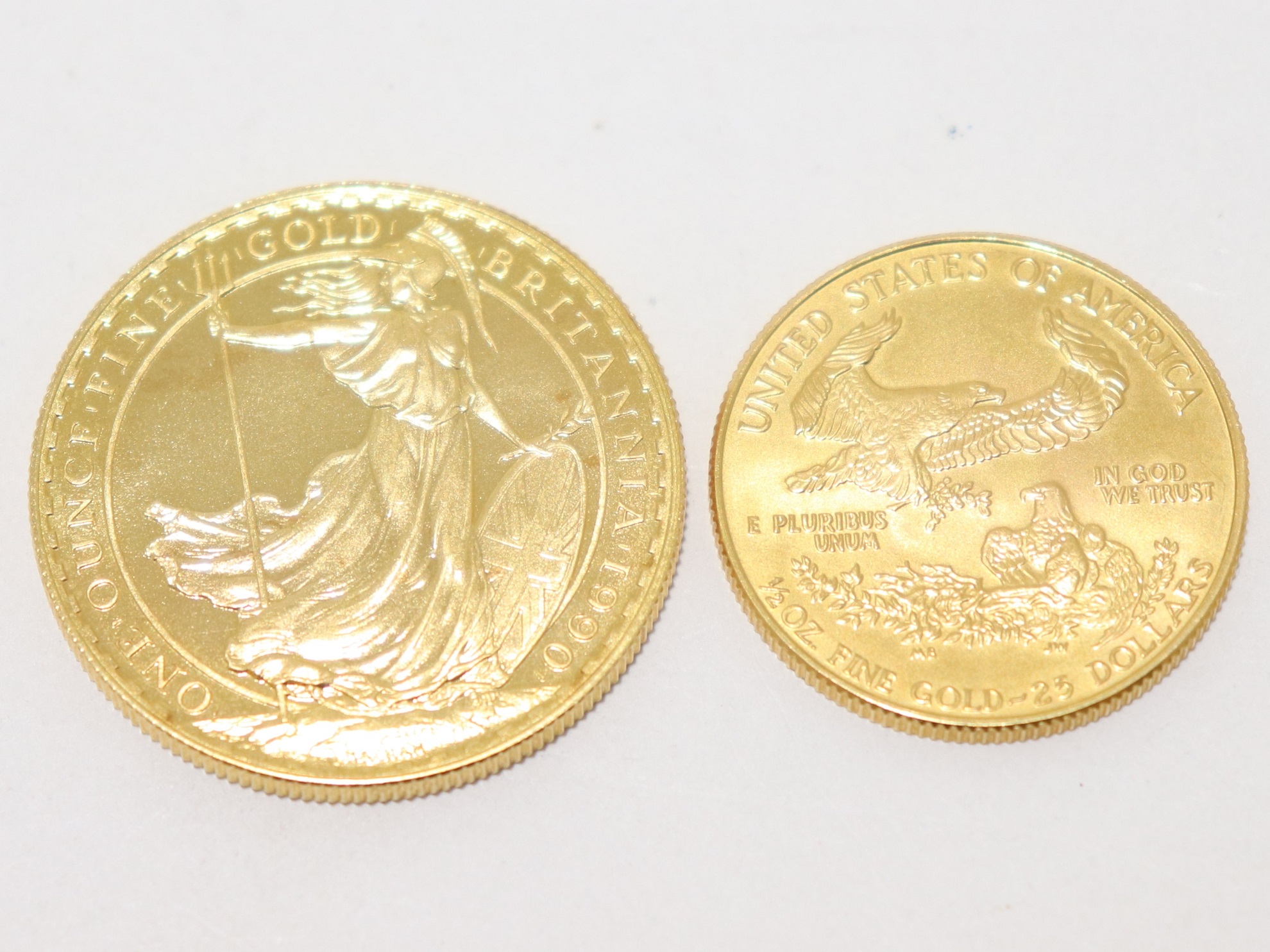 イギリスの王立造幣局が発行するブリタニア金貨と、アメリカ合衆国政府発行のイーグル金貨です!