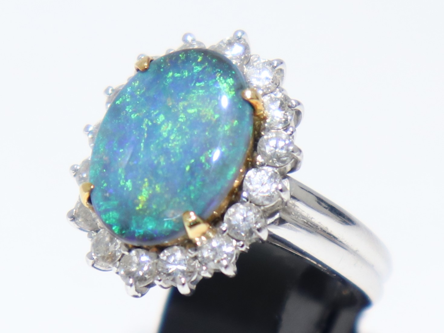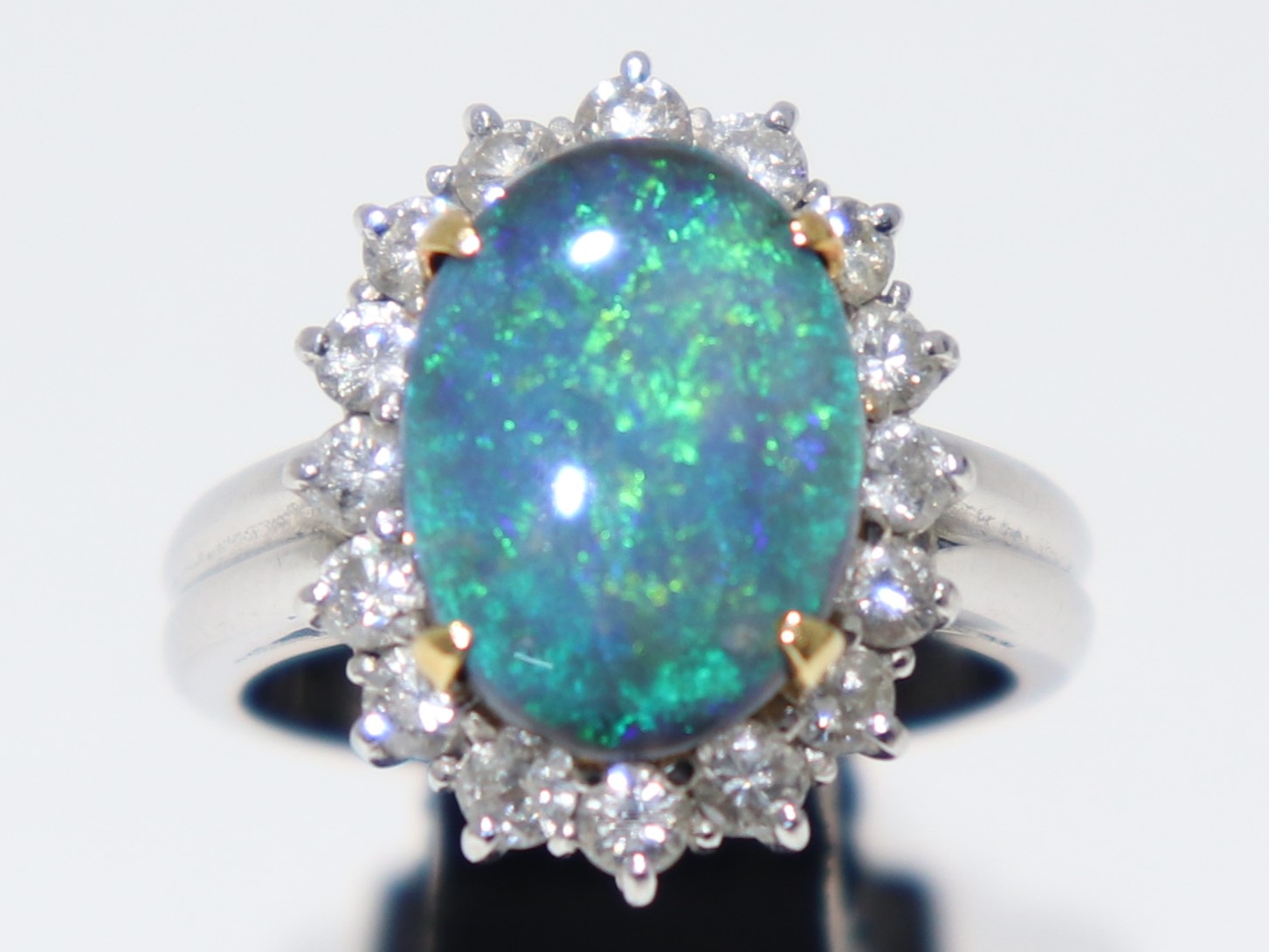 周りのパヴェダイヤも内包物や傷が少なく、オパールの鮮やかな色を引き立てます。