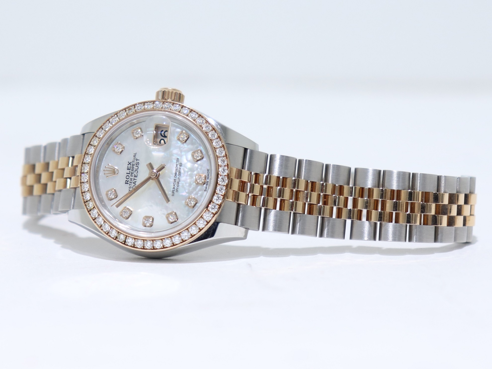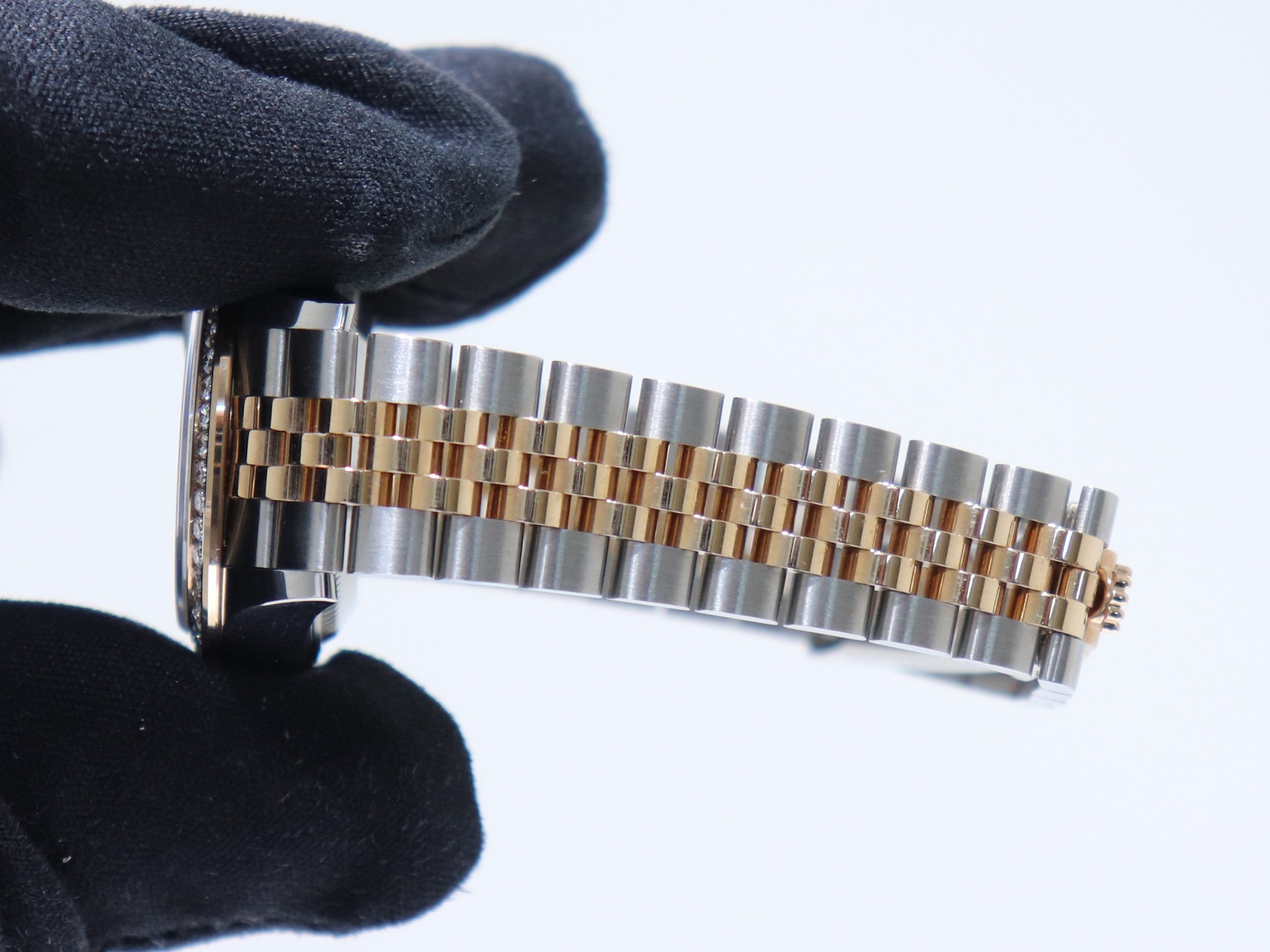 ローズゴールドとホワイトシェル、ベゼルダイヤの組み合わせが大変煌びやかな人気モデル!