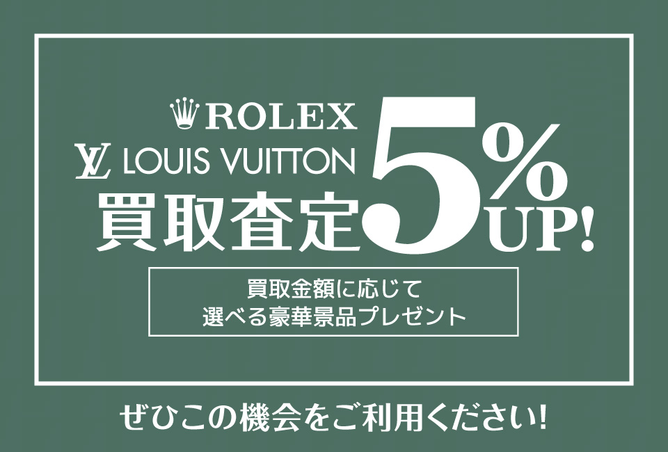 ・ロレックス、ルイ・ヴィトンの買取価格を通常より5%UPいたします。